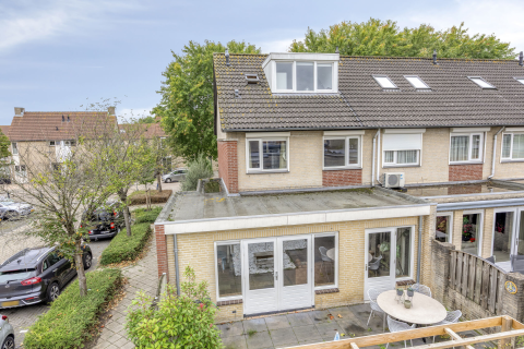 Aan de voorzijde van de woning ligt de ruime werkkamer van ca. 11,4 m². Dankzij de kamerhoge ramen geniet je van veel daglicht en uitzicht op de voortuin. De op maat gemaakte vaste kastenwand met extra legplanken zorgt ervoor dat je al je administratie of werkspullen keurig kunt opbergen. Bovendien is de ruimte voorbereid op meerdere functies: onder de vloer zijn een afvoer en waterleiding aanwezig, waardoor je hier eenvoudig een extra badkamer of zelfs praktijkruimte zou kunnen realiseren.
